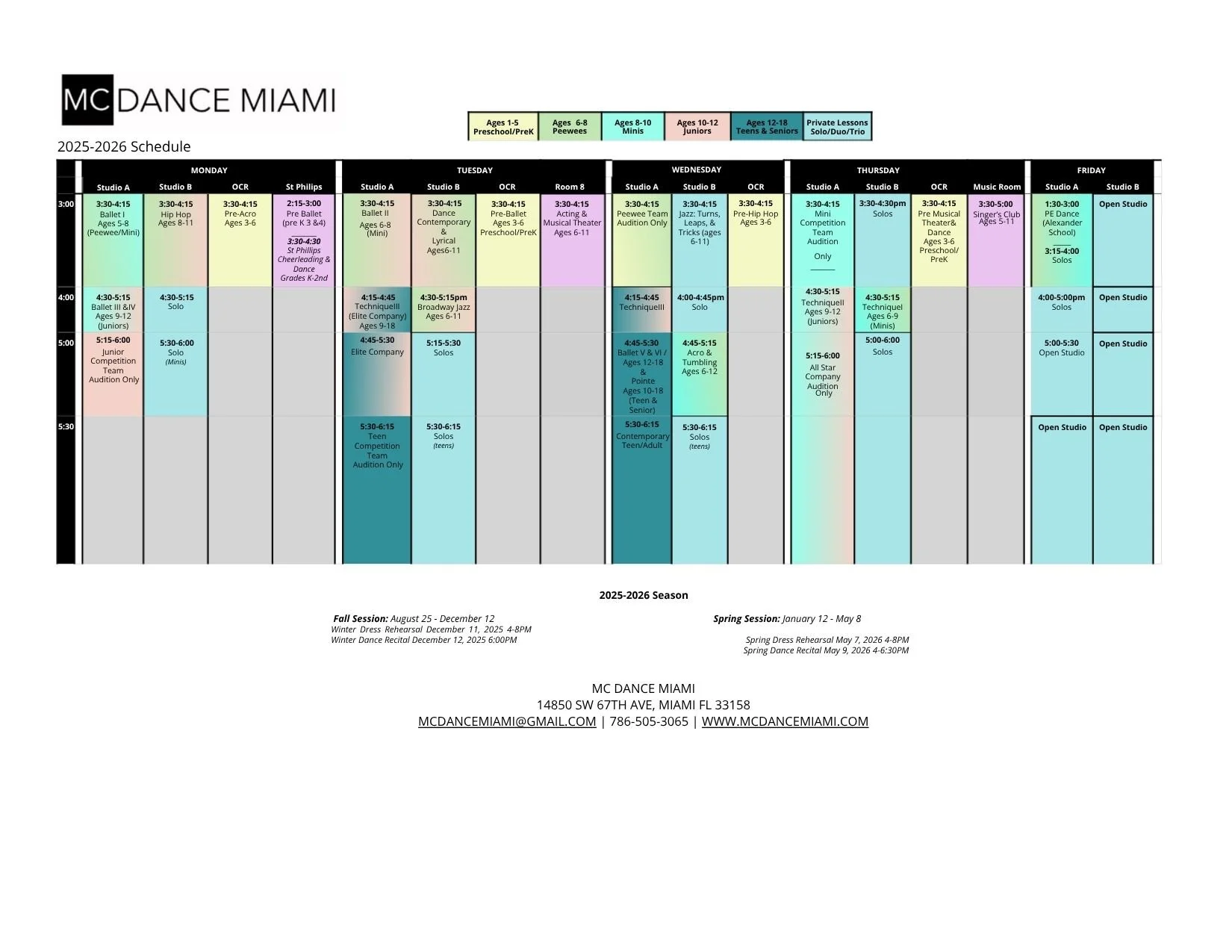 2025-2026 Dance Class Schedule